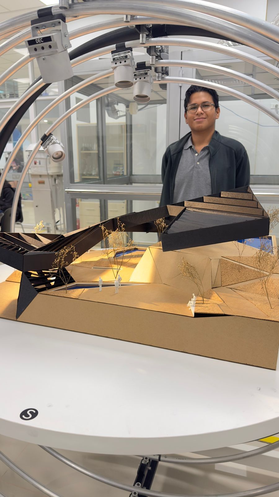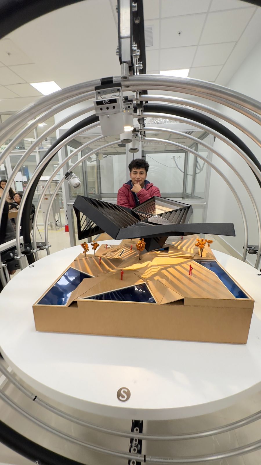 “Through the Heliodon we can verify the path of the sun in relation to the north of the project — explains Professor Rivadeneira — and understand how light filters are generated. This allows students to identify which areas should be more covered, especially those intended for rest.”